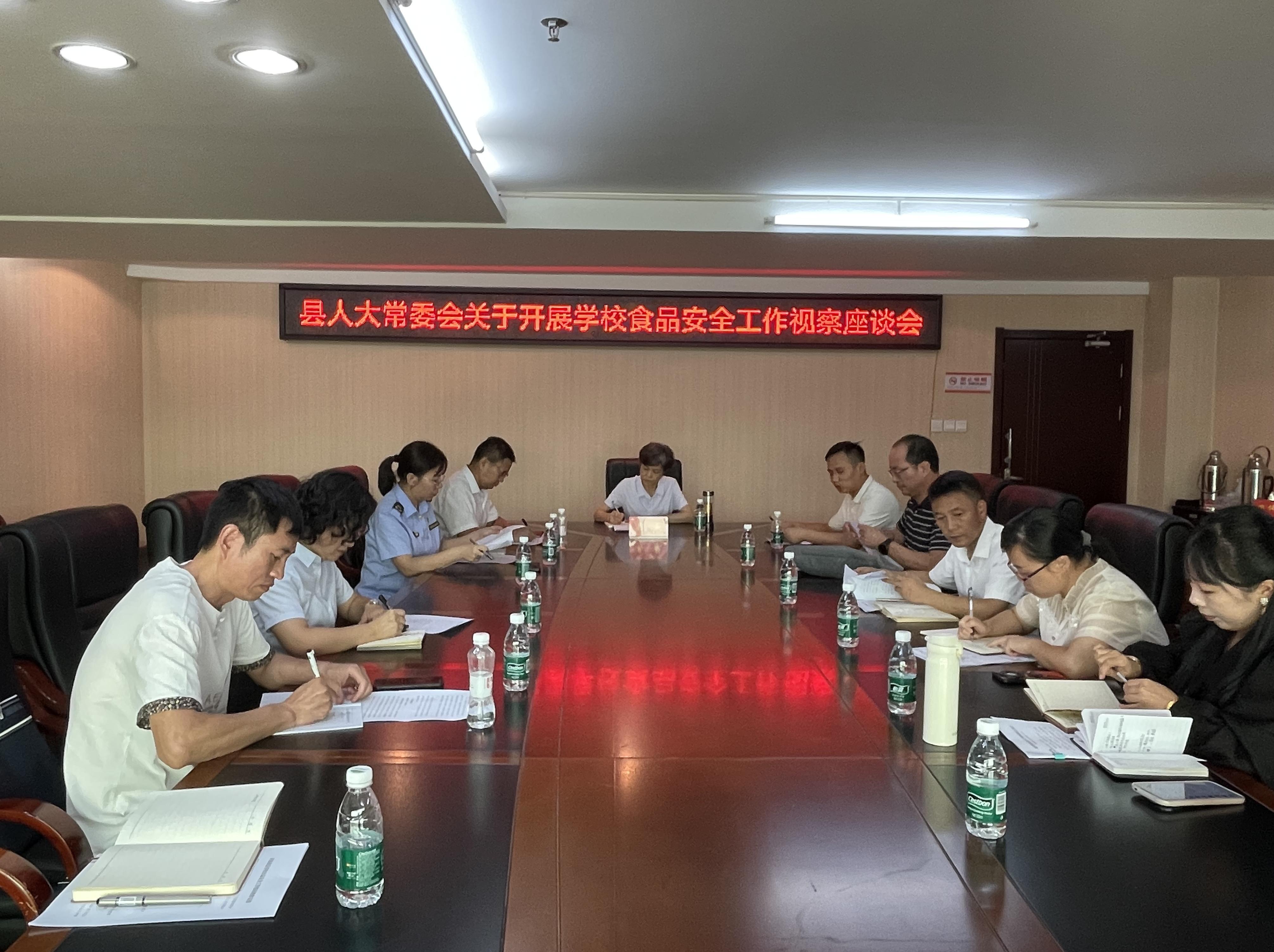 县人大常委会副主任提名人选吴薇开展学校食品安全工作情况视察,并在视察结束后召开座谈会,听取县教体局、县市监局关于我县学校食品安全工作情况的汇报。