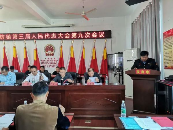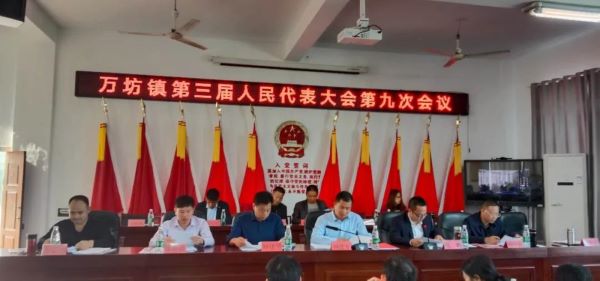 10月10日,在庄严的国歌声中,万坊镇隆重召开第三届人民代表大会第九次会议。会议应到代表55人,因事因病请假9人,实到代表46人,符合法定人数。各村党支部、镇属办单位负责人、驻镇单位负责同志列席了会议。