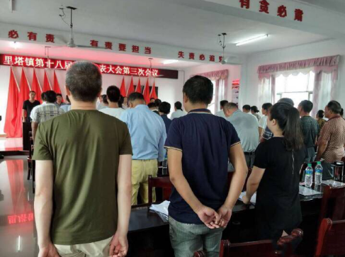 2017年8月20日至8月21日,南城县里塔镇在镇政府四楼会议室隆重召开里塔镇第十八届人民代表大会第三次会议。会议在庄严的国歌声中开幕,大会听取了黎应祥同志代表镇政府作的《政府工作报告》,戴春华同志代表镇人大主席团作的《人大工作报告》,李水福同志代表镇政府作的《关于里塔镇2017年上半年财政预算执行情况的报告》(书面),曾平平同志代表镇政府作的《里塔镇环境综合整治工作报告》,冯婷同志代表镇政府作的《脱贫攻坚工作报告》。