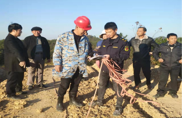 (乡人大代表钱火明协助村民进行征地测量)