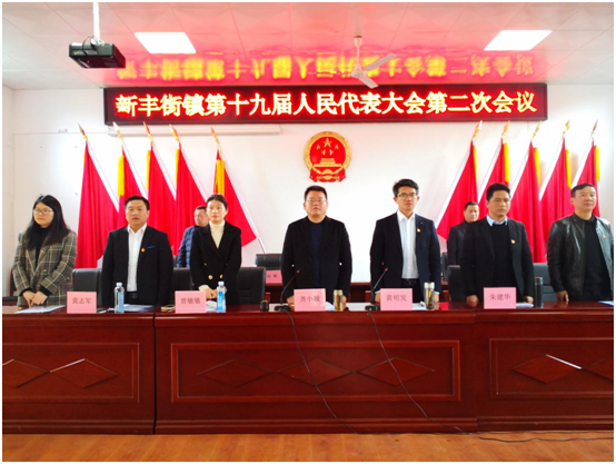 上午9时,尧小毅宣布新丰街镇第十九届人民代表大会第二次会议开幕,全体起立,奏唱国歌。