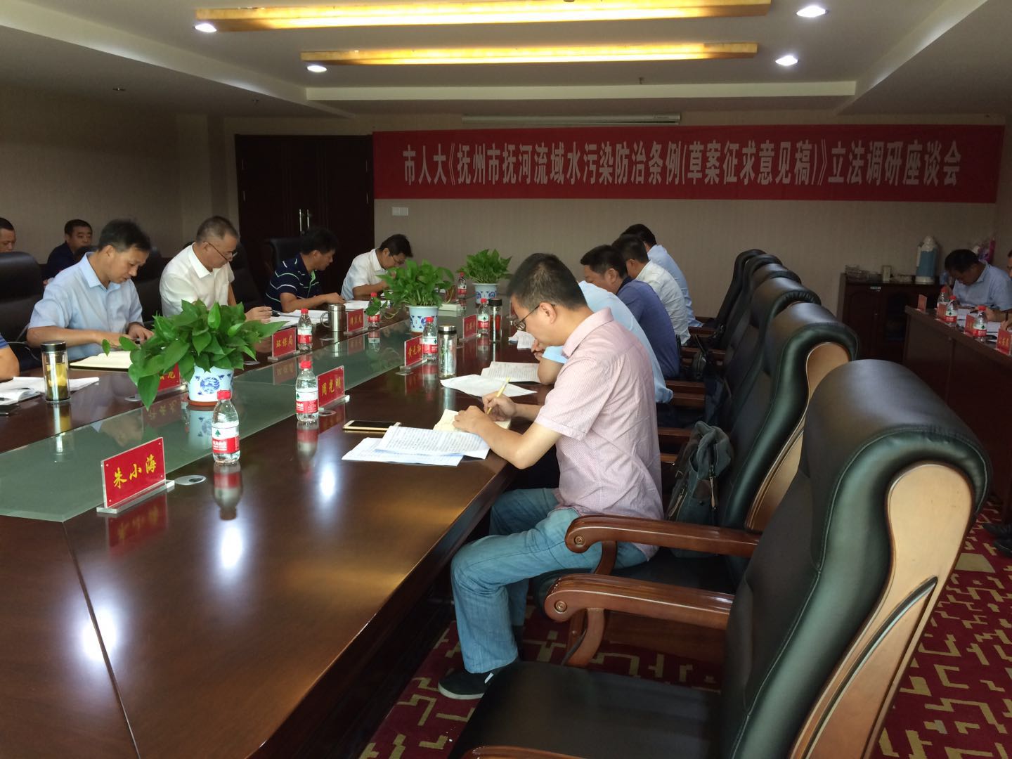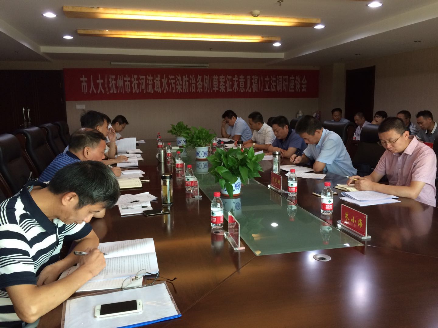调研通过座谈会形式进行,座谈会上,来自我县环保、水务、城管等相关部门针对《抚州市抚河流域水污染防治条例》(草案征求意见稿)法文条款中水污染防治、水资源保护等方面结合自身水污染防治工作中存在的问题、困难进行了充分的讨论发言。调研组表示,在南城县广开言路、集思广益的调研工作收获颇丰,对立法工作具有积极的推动作用。同时提出,《条例》的出台和实施将对保护抚河流域环境建设有着积极的意义,为建设幸福抚州做出积极贡献。
