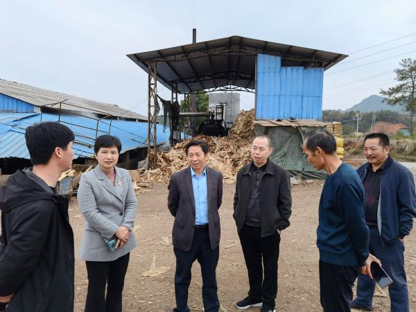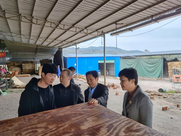 在龙恒木业有限公司生产现场,朱小明一行人通过现场查看、听汇报、看设计图纸等方式,详细了解了该企业生产建筑模板的制作工艺、销售状况和带动群众增收的情况。