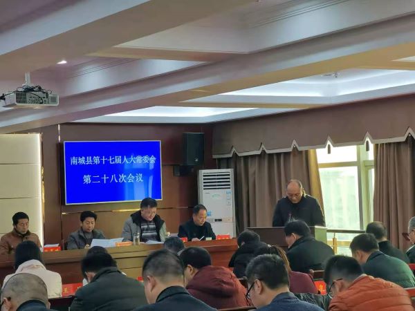 12月30日,南城县第十七届人大常委会第二十八次会议召开。县人大常委会主任陈胜堂、县人大常委会副主任张晨曦、游庆龙、朱小明、周青林出席会议。副县长胡军民、县人民法院院长周明文、县人民检察院检察长王小凤列席会议。