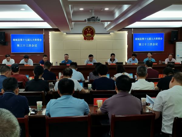 8月3日,南城县召开第十七届人大常委会第三十三次会议。县人大常委会主任陈胜堂、副主任张晨曦、游庆龙、朱小明、周青林出席会议。县委常委、常务副县长万国辉,县人民法院院长周明文,县纪委副书记、监委副主任徐国金,县人民检察院副检察长胡志强,县人大常委会工委负责同志和各乡(镇)人大主席候选人列席本次会议。