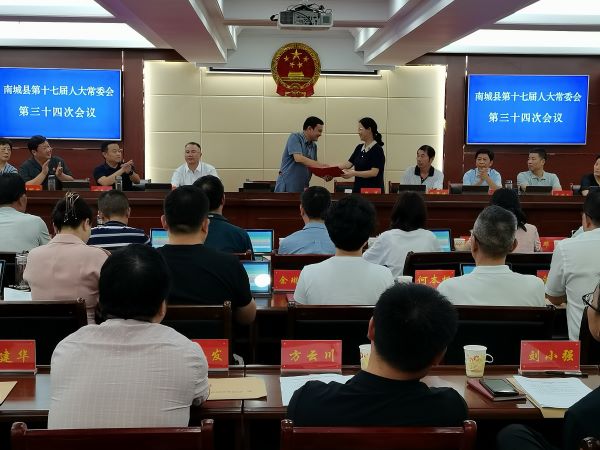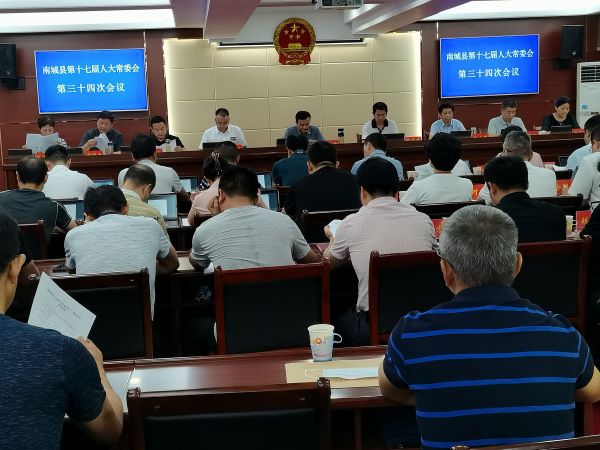 8月13日,南城县召开第十七届人大常委会第三十四次会议。县人大常委会主任陈胜堂、副主任张晨曦、游庆龙、朱小明、周青林出席会议。县委常委、县纪委书记、监委主任艾恒知,副县长周爱花,县人民法院院长周明文,县人民检察院检察长王小凤,县人大常委会各工委负责同志和各乡(镇)人大主席候选人列席本次会议。