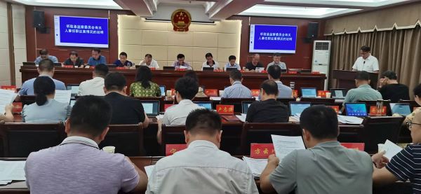 9月17日,南城县召开第十七届人大常委会第三十五次会议。县人大常委会主任陈胜堂、副主任张晨曦、游庆龙、朱小明、周青林出席会议。县人大常委会副主任候选人吴军、邓胜,县人民政府副县长胡军民,县委纪委副书记、监委副主任李小勇,县人民法院潘胜利,县人民检察院胡志强,县政府办尧国强,县司法局局长陈玉欣,县生态环境局熊志刚,县人大常委会工委负责同志和各乡(镇)人大主席候选人列席本次会议。