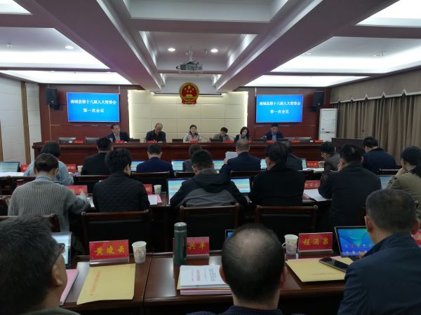 10月22日上午,南城县召开第十八届人大常委会第一次会议。县人大常委会主任章燕萍、副主任朱小明、吴军、汤岩、邓胜、周伟民出席会议。县委常委、常务副县长王春斐,县人民法院院长谭文强,县人民检察院检察长潘前进,县纪委副书记帅宝进,县审计局黄志平,县财政局李超,县发改委刘平,县人大常委会工委负责同志和各乡(镇)人大主席列席本次会议。