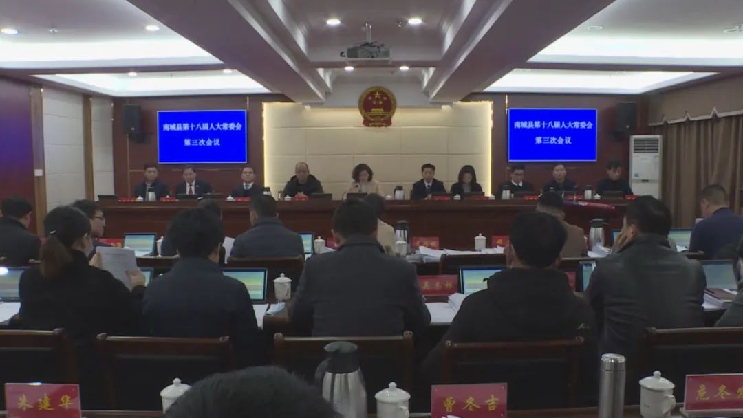 2月16日,南城县第十八届人大常委会第三次会议在行政中心五楼会议室召开。县人大常委会主任章燕萍主持会议。县人大常委会副主任朱小明、吴军、汤岩、邓胜、周伟民出席会议。副县长、县公安局局长孔思东及县纪委、县人民法院、县人民检察院相关负责人列席会议。