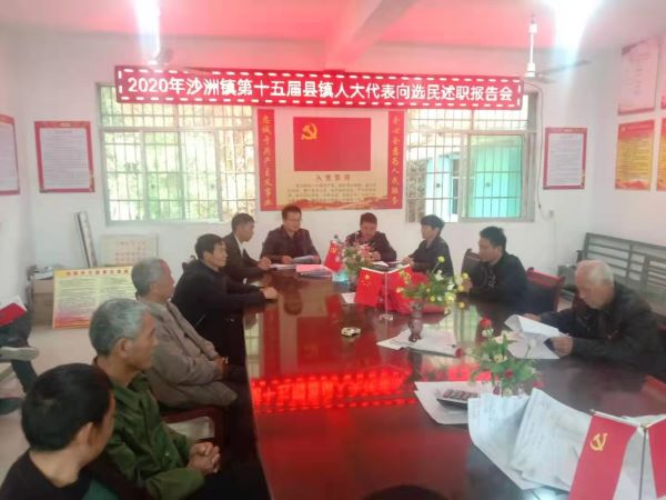沙洲镇镇人大主席团于2020年12月25日上午在珀玕村委会召开选区人大代表向选民述职报告会。本次述职报告会参加述职的县代表2名,镇代表5名,选民17人。县、镇代表依次向选民作述职报告。会后并开展12月份代表集中接待选民活动,共收集代表和选民意见、建议2条,现场答复2条。