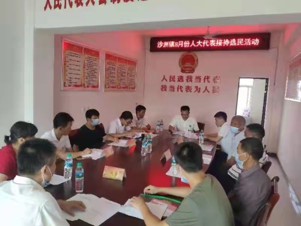 2021年8月19日,沙洲镇人大在镇人大代表联络工作站开展8月份代表接待选民活动,参加活动的有:县代表2人,镇代表3人,接待选民7人。听取意见建议:关于野猪损坏庄稼、自来水水质问题、高标准农田建设的意见建议3条,现场答复2条。会上,镇人大主席张勇龙对县镇人大换届选举相关事项和政策进行了详细的说明和解读。